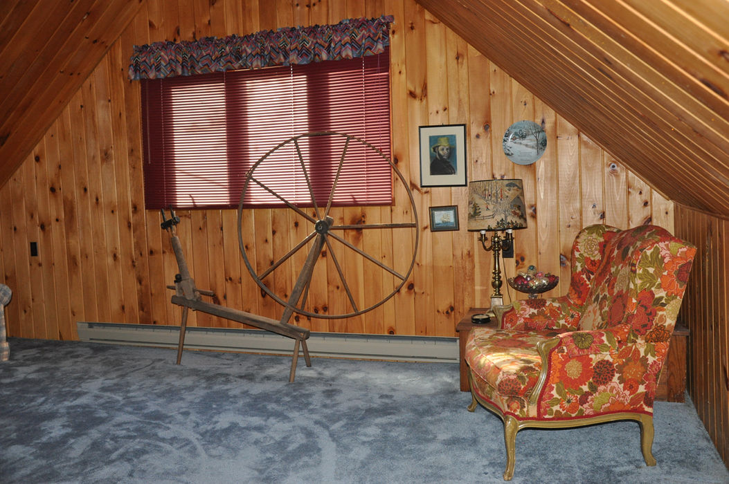 We also kept the rustic feel with beautiful pine ceilings, timber framing and floors, but added a lightness to the living room and kitchen with light-colored walls. The staircase was also moved and opened up to allow for breathing room downstairs.